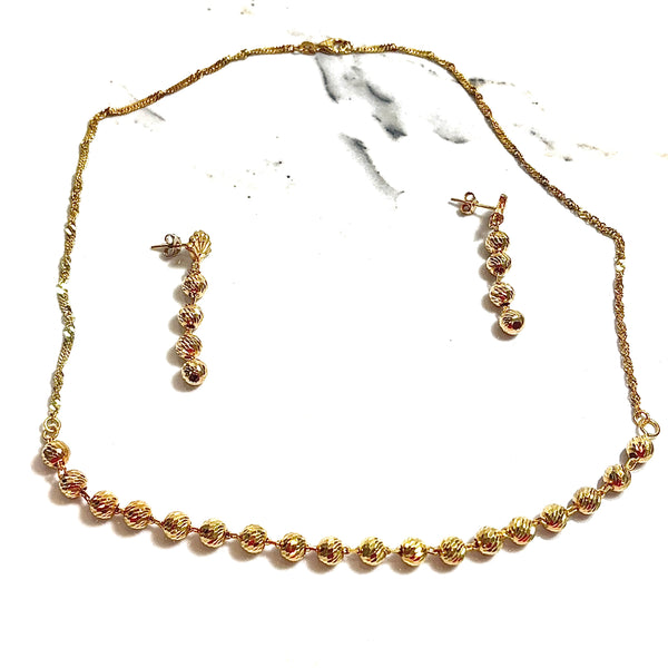 Radiate elegance with the 2-Piece Mooncuts Wedding Set, meticulously crafted from luxurious 14 carat gold. Featuring a captivating mooncut design, this stunning set includes a refined necklace and matching bracelet with coordinating earrings – each piece polished to a brilliant shine with a clean finish.