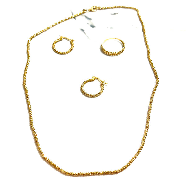 Experience elegance with our 3-Piece Wedding Set crafted from 14 carat gold, featuring a stunning diamond dust finish. This exquisite set includes a necklace, ring, and earrings, all designed with the unique and sophisticated mooncut model, offering a modern yet timeless appeal.