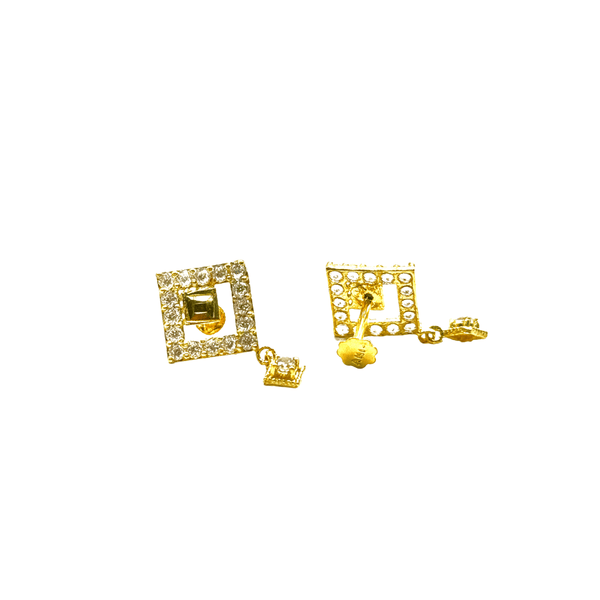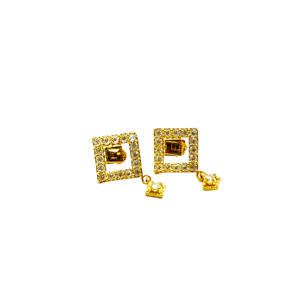 Modern geometry meets royal elegance in the Majestical Tilted Square Hanging Earrings, crafted in 14 carat gold. The tilted square design creates a unique and contemporary silhouette, while the hanging stone adds movement and brilliance.