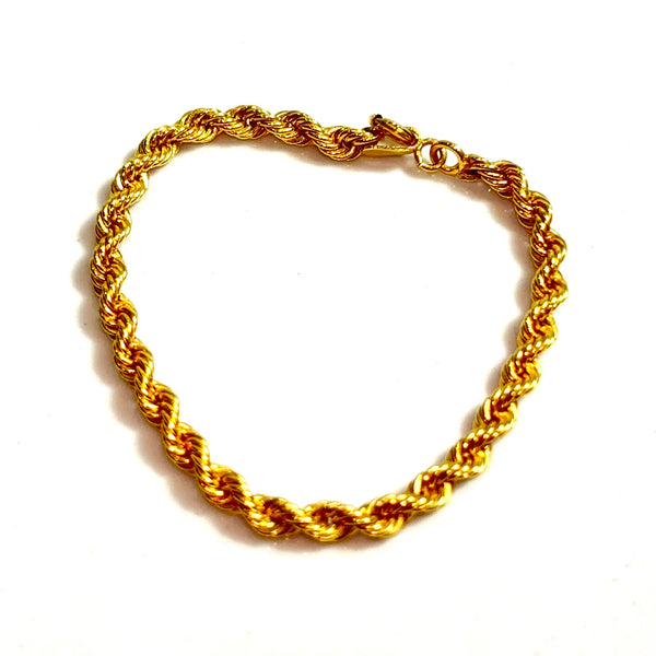 Finished with a clean polished surface, it radiates a smooth, reflective glow that enhances the richness of the gold. Whether worn on its own or stacked, this rope bracelet adds luxury and sophistication to any outfit.