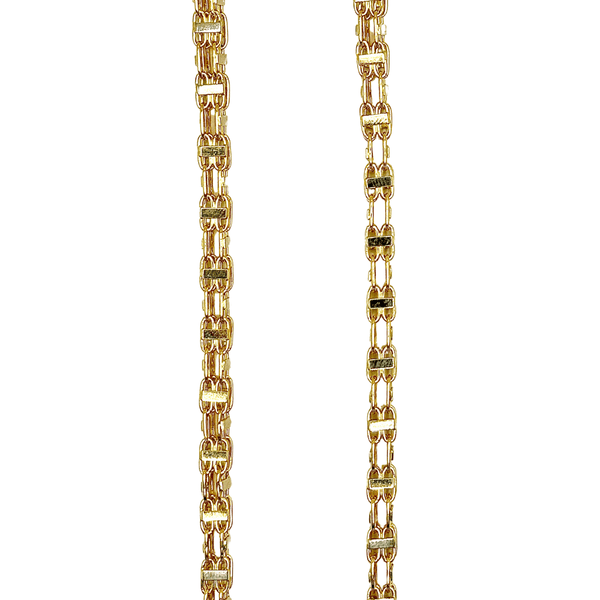 Its flexible construction means the width may vary slightly along the length, but the weight and overall appearance remain identical, ensuring consistency and premium feel. The bicolor design amplifies shine and makes this chain a standout piece for serious jewelry collectors.