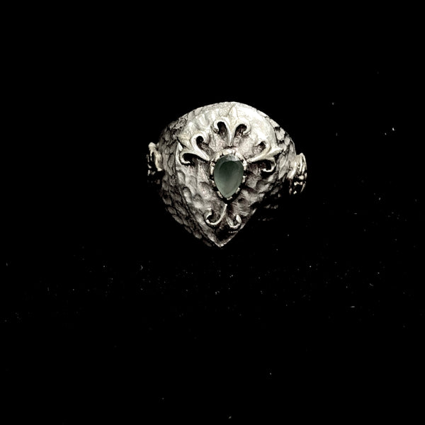 Ruby Emerald Dew Ring - Silver 925 | Diamond Dust Finish | Emerald Centerpiece