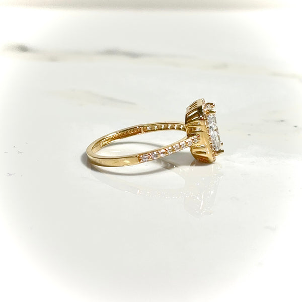 Golden Emerald Ring – 14 Carat Gold | Clean Polished Finish | Sparkling CZ Stones & Emerald