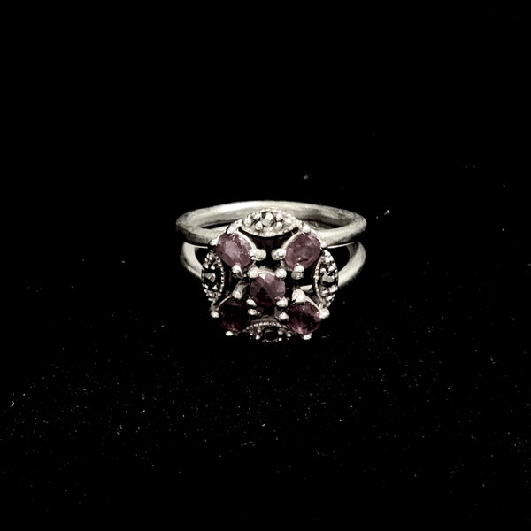 Midnight Bloom Ring – Silver 925 | Clean Polished Finish | Ruby Stones | Adjustable