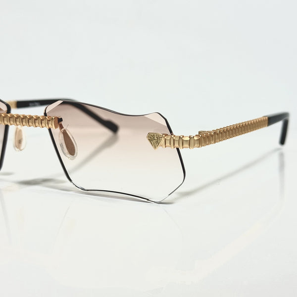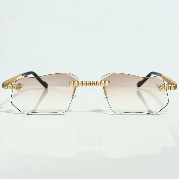 The warm Gradient Pink Shade creates a soft, inviting transition of color, complementing the gold plating with a subtle, elegant glow. This model features our signature diamond cut lens, offering a radiant, faceted sparkle that captures and reflects light beautifully—ideal for customers who prefer eyewear with a striking yet graceful finish.