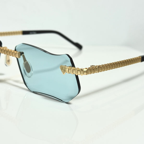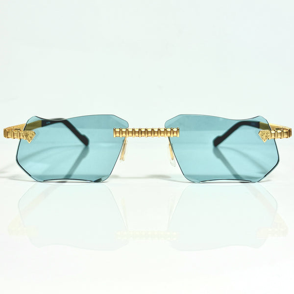The rich Dubai Blue Shade creates a warm, earthy depth, beautifully complementing the gold plating with a subtle, elegant glow. This model features our signature Diamond cut lens, offering a radiant, faceted sparkle that captures and reflects light beautifully—ideal for customers who prefer eyewear with a striking yet refined finish.