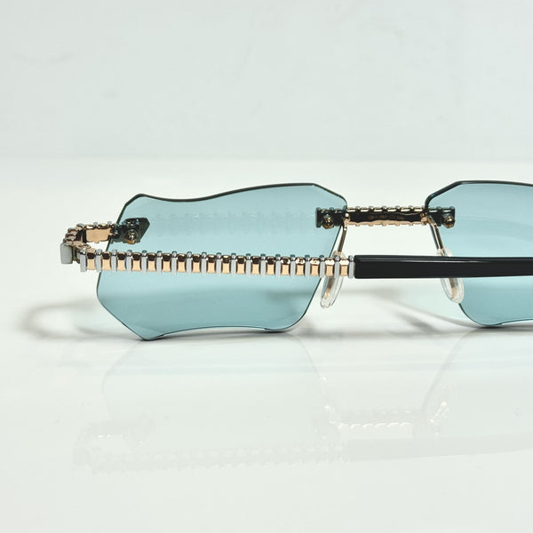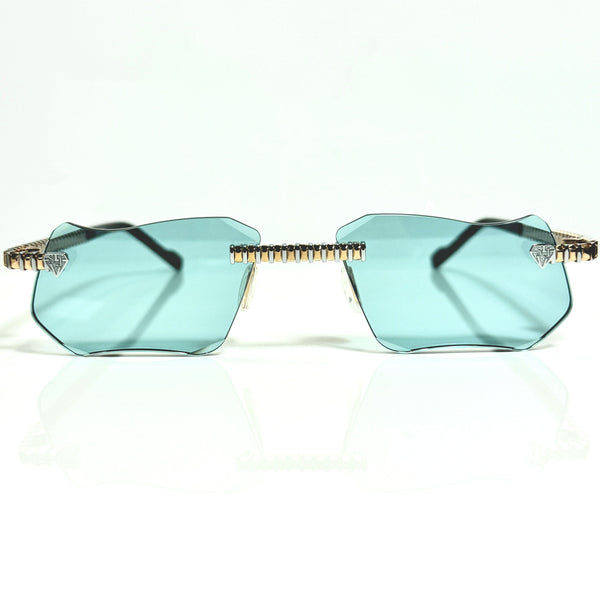 The rich Dubai Blue Shade creates a warm, earthy depth, beautifully complementing the gold plating with a subtle, elegant glow. This model features our signature diamond cut lens, offering a radiant, faceted sparkle that captures and reflects light beautifully—ideal for customers who prefer eyewear with a striking yet refined finish.
