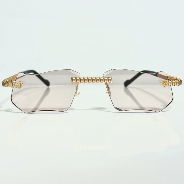 The warm Gradient Beige Shade creates a soft, inviting transition of color, complementing the gold plating with a subtle, elegant glow. This model features our signature diamond cut lens, offering a radiant, faceted sparkle that captures and reflects light beautifully—ideal for customers who prefer eyewear with a striking yet graceful finish.