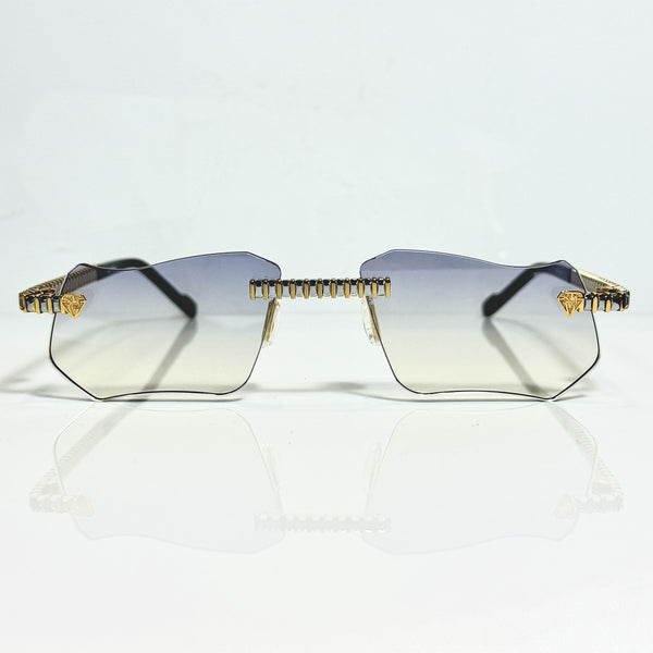 The rich Purple Gradient Shade creates a warm, earthy depth, beautifully complementing the gold plating with a subtle, elegant glow. This model features our signature diamond cut lens, offering a radiant, faceted sparkle that captures and reflects light beautifully—ideal for customers who prefer eyewear with a striking yet refined finish.