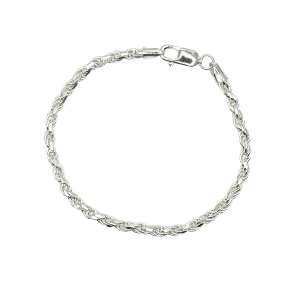 For a bold and confident look, the Solid Silver 925 Rope Bracelet (4.1mm) delivers outstanding presence and luxury. Crafted from solid sterling silver, this bracelet offers exceptional strength, weight, and durability. The diamond-cut finish intensifies the shine, highlighting the intricate rope design with a high-end appearance.